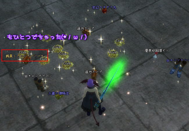 普段は3つしかアイテム落ちないんだけど、ちょうど1.5倍です。