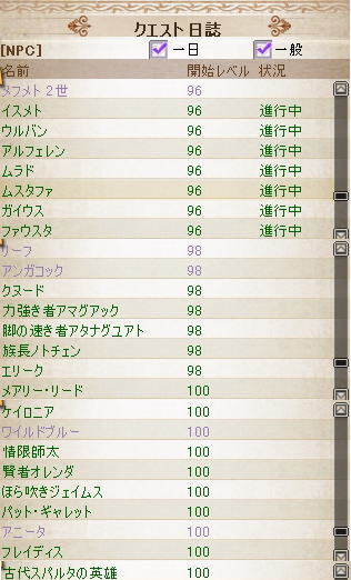 進行中ってところが全部激戦地関係。(レベル96のところがそう